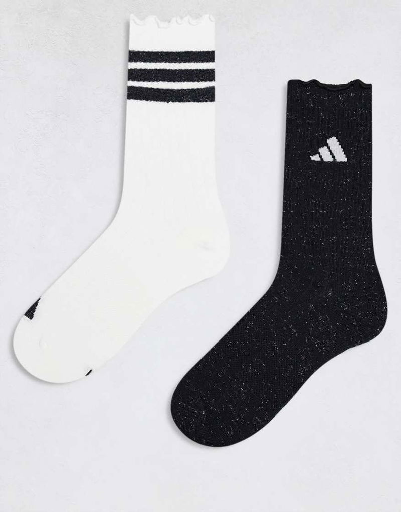 Training Crew Socks With Frill In White And Black Sparkle 2 Pack