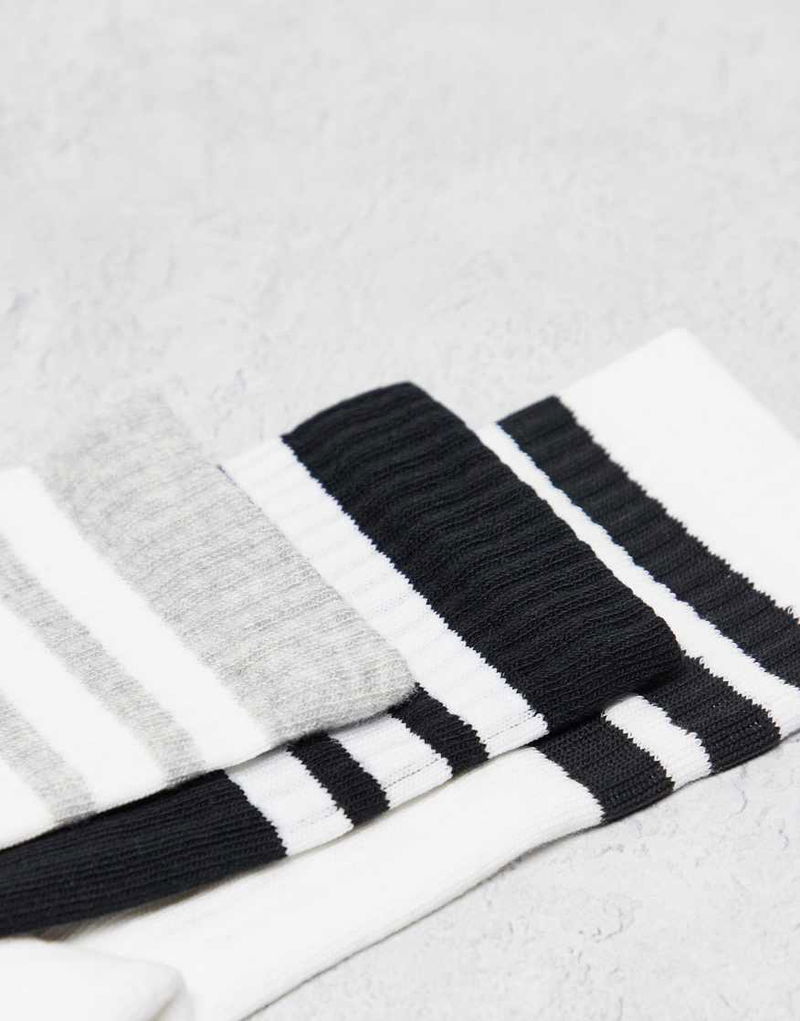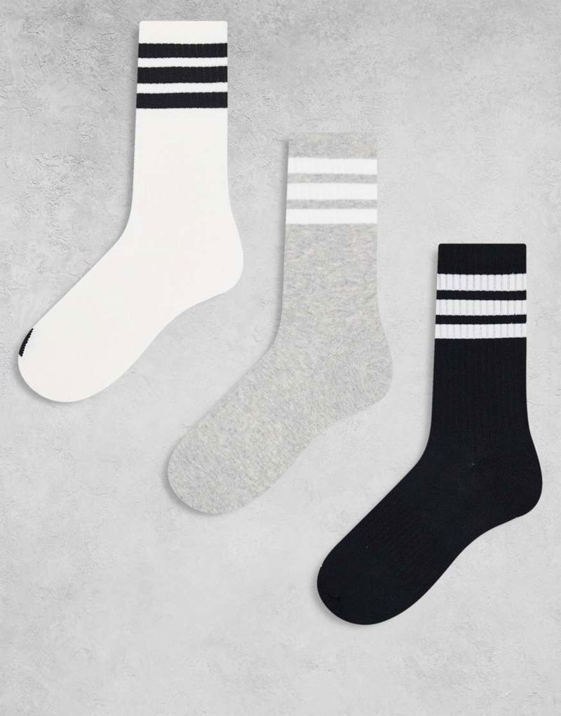Training Essentials 3 Stripe Crew Socks In Grey 3 Pack