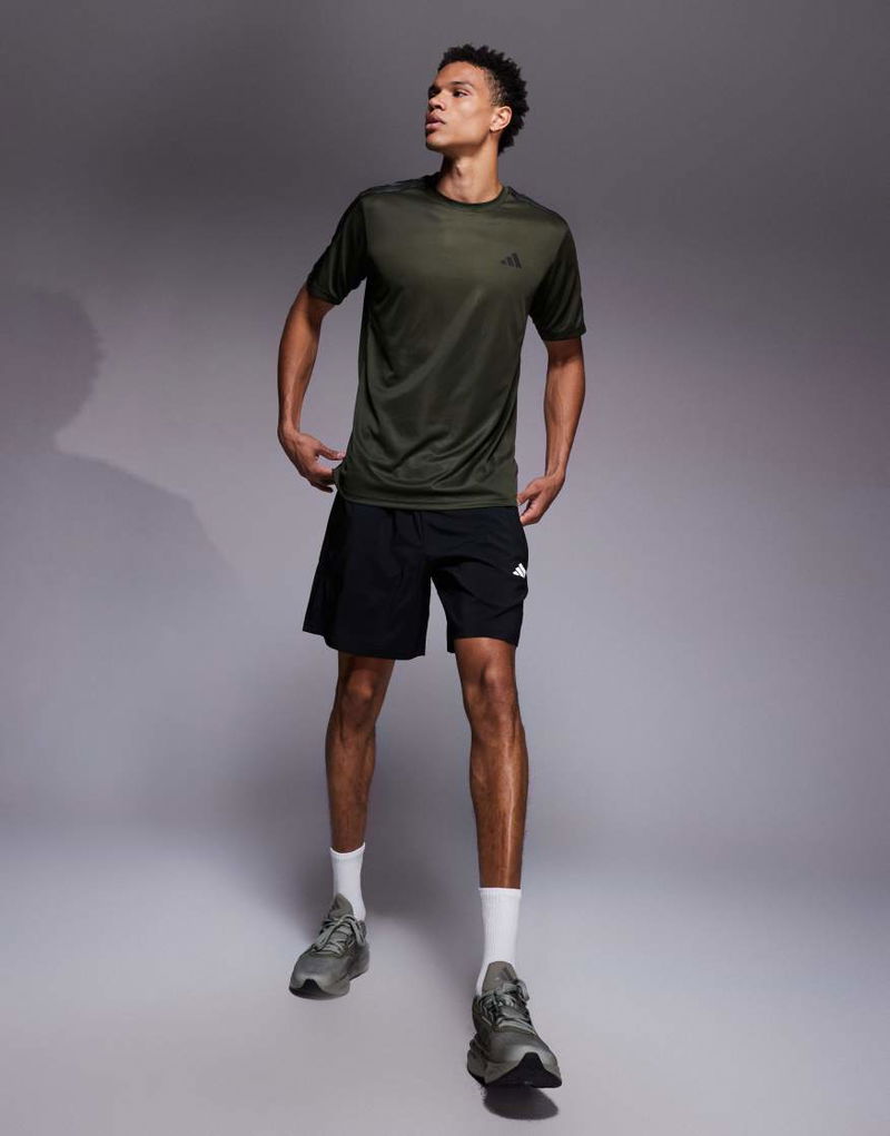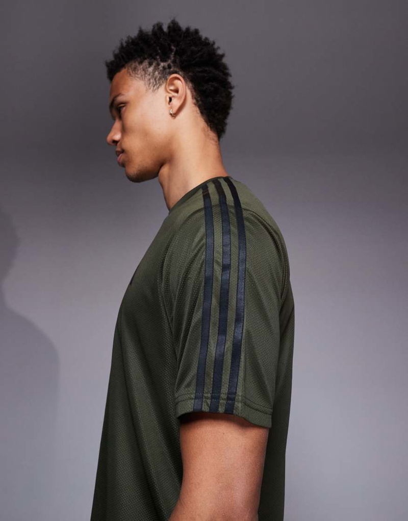 Training Essentials 3 Stripe T-shirt In Dark Khaki