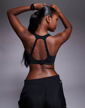 Suitable for high-impact activities. Round neck. Branding to underband. Cut-out back. Sportswear: smooth and stretchy fabric.