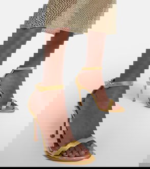 Amina Muaddi has quickly become a fashionable favorite thanks to its eye-catching shoes. The Adut sandals are made from patent leather for a shiny effect and rest atop 105mm heels.