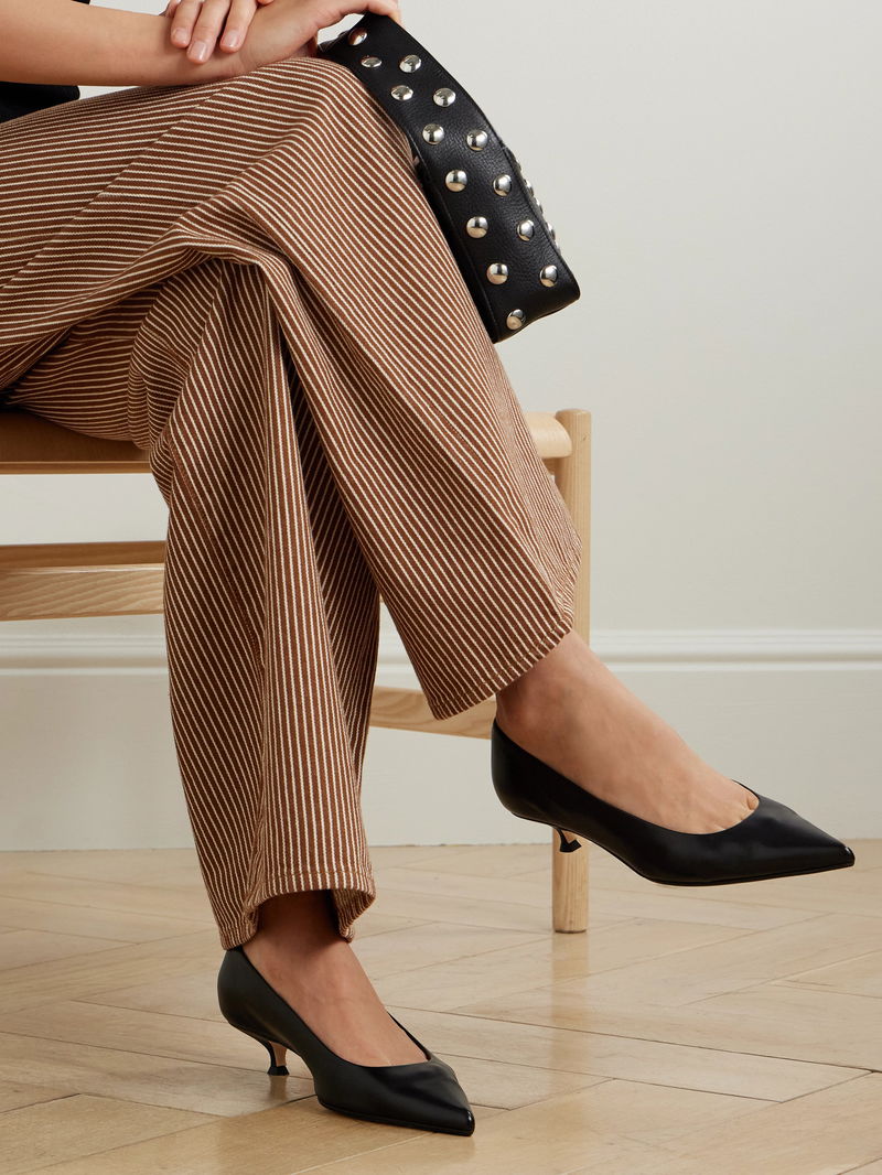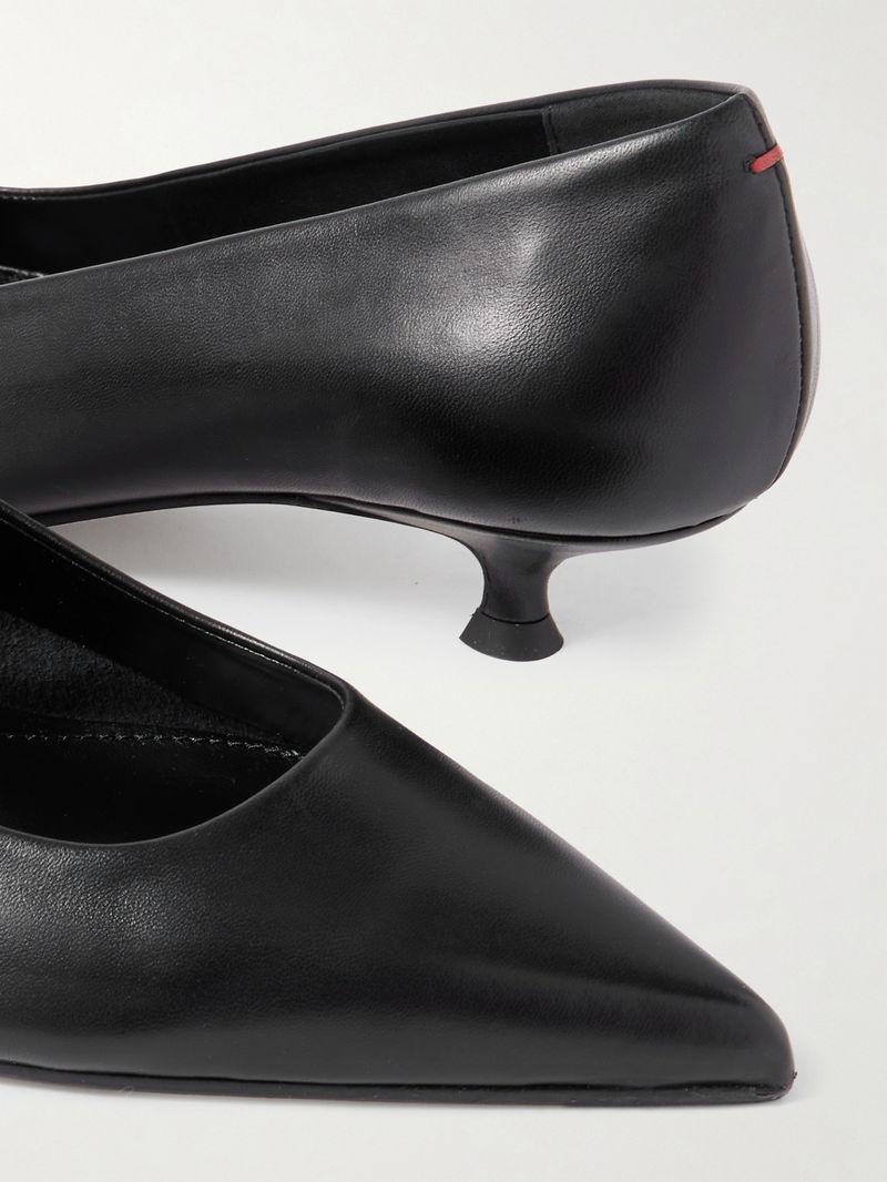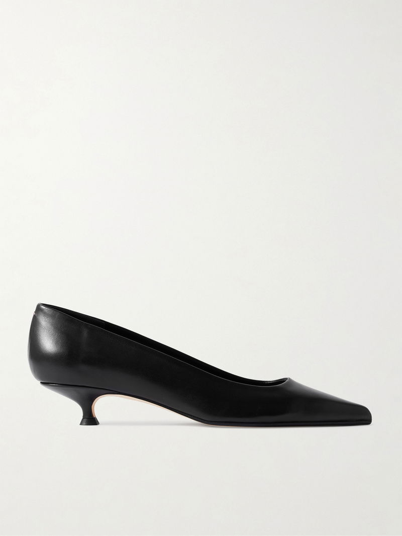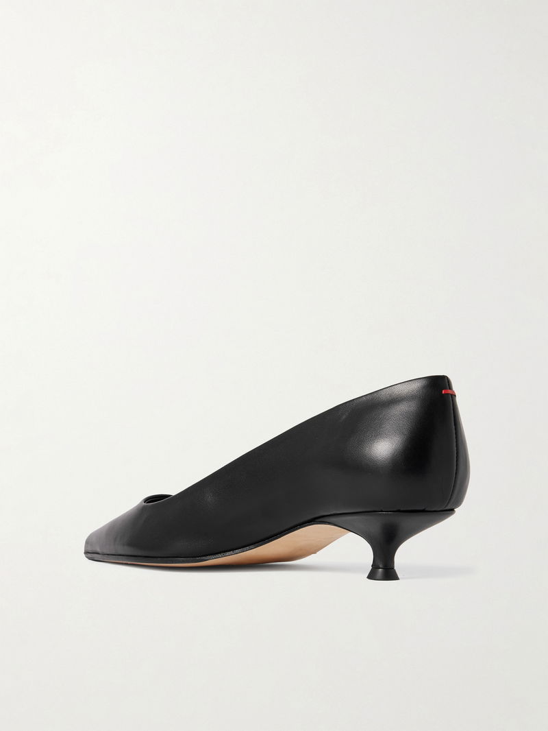 aeyde approaches footwear with a distinctly modern sensibility. These 'Cari' pumps are made from smooth leather with sharp pointed toes and rest on low kitten heels that feel refined yet wearable. Pair yours with tailored pants or a fluid skirt.