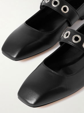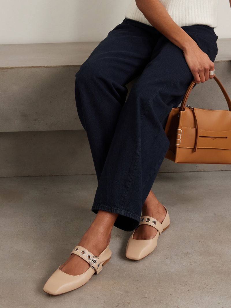 Aeyde updates its signature 'Uma' Mary Jane flats with a wider, eyelet-embellished buckle for the new season. This version is made from leather and has the same chic squared toe.