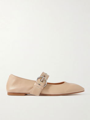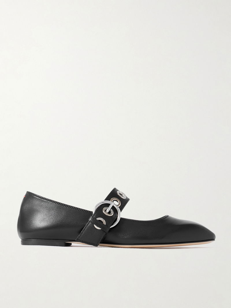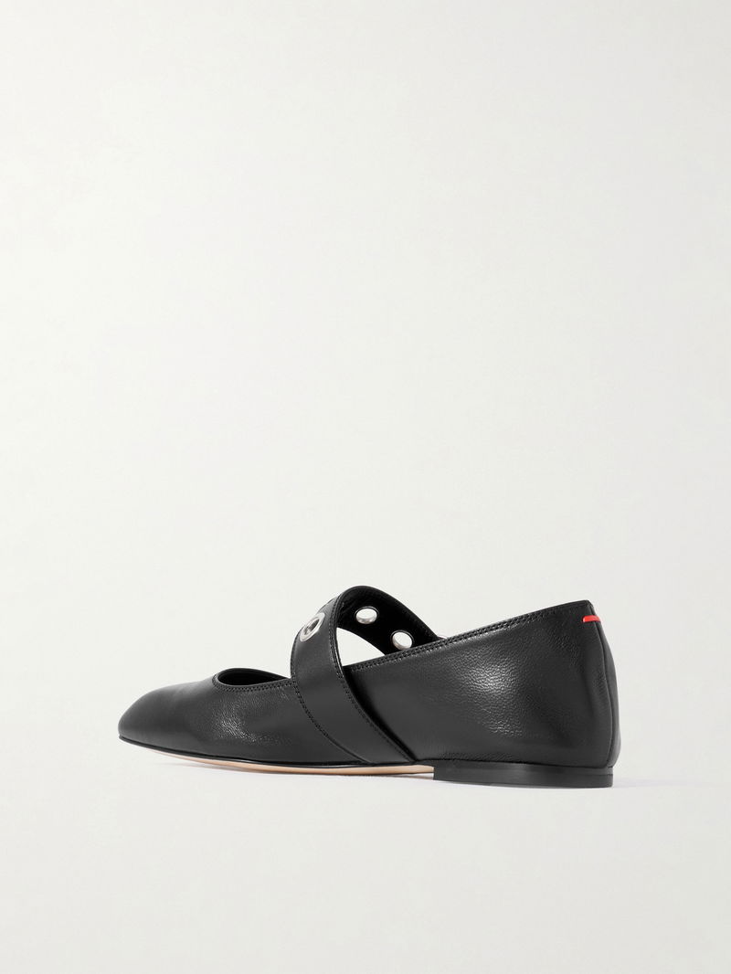 Uma Eyelet-embellished Leather Mary Jane Ballet Flats