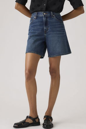 High-rise denim shorts.