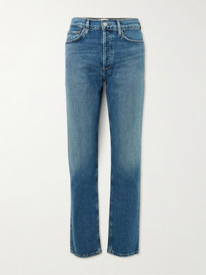 Inspired by decades past, these loose-fitting rigid jeans from AGOLDE feature allover distressed detailing.
