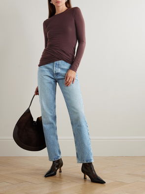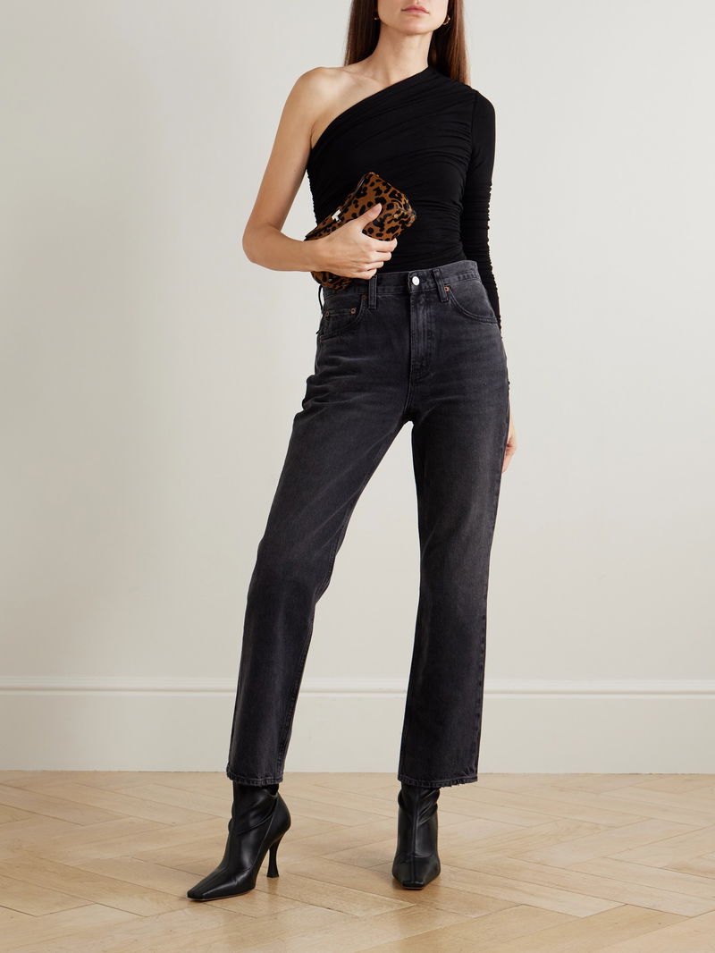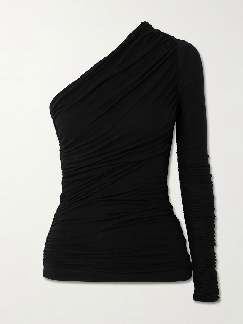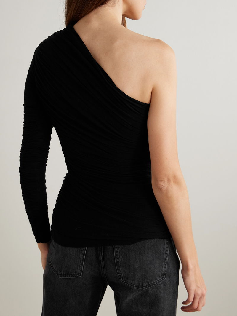 Ruched down the side, AGOLDE's 'Annette' top fans out prettily through the bodice and single sleeve. It's made from stretch-jersey to hug your frame.