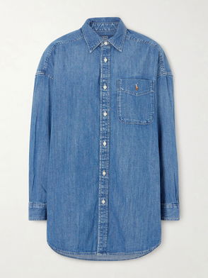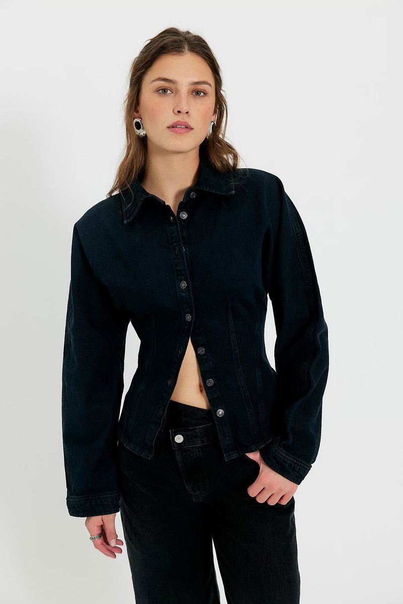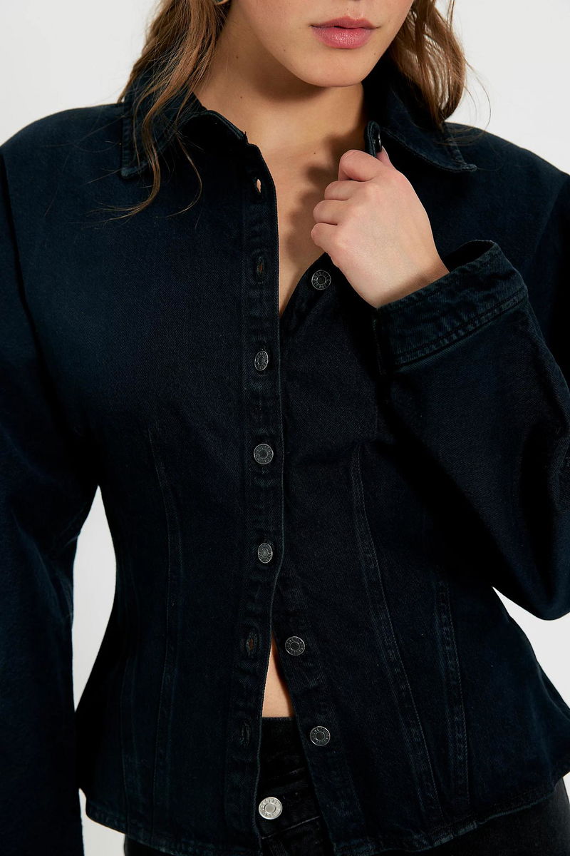 Forever flattering, this sleek denim top from AGOLDE features a lightweight cotton fabrication, a flared, tailored silhouette, and a classic collared neckline.