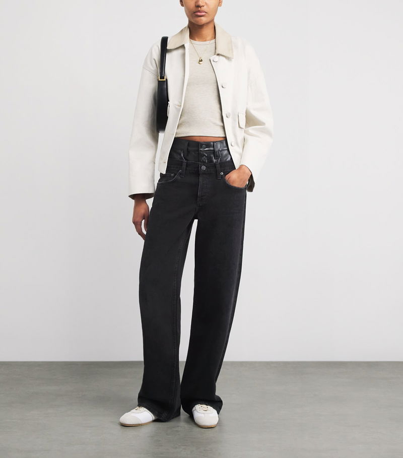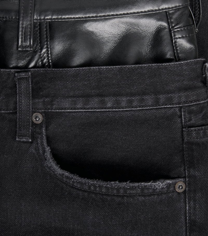 With an exterior akin to wearing two pairs atop each other, the Elson jeans sport a double-waist profile crafted from recycled leather and regenerative cotton. The pair features a lived-in feel without compromising on a structural silhouette, while subtle marbling adds intrigue to a versatile statement piece.