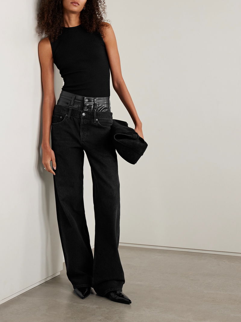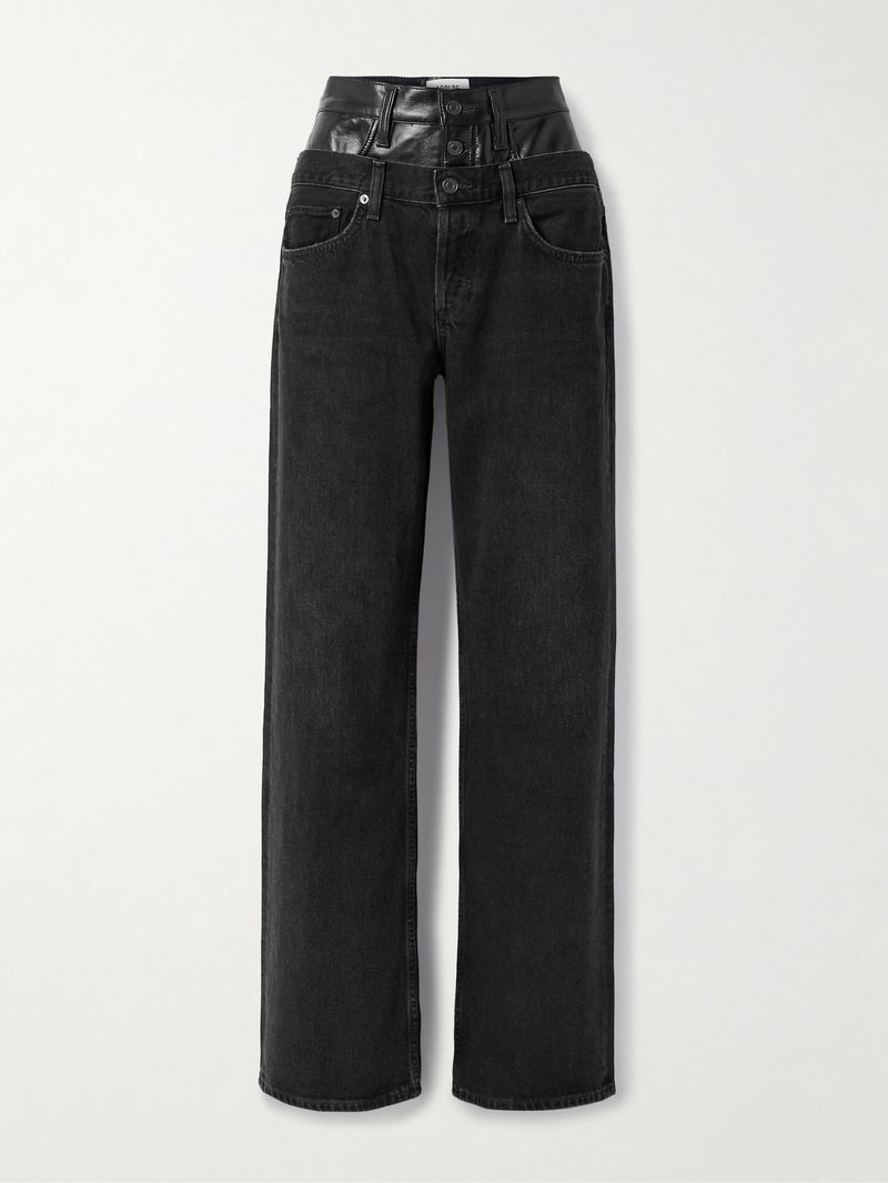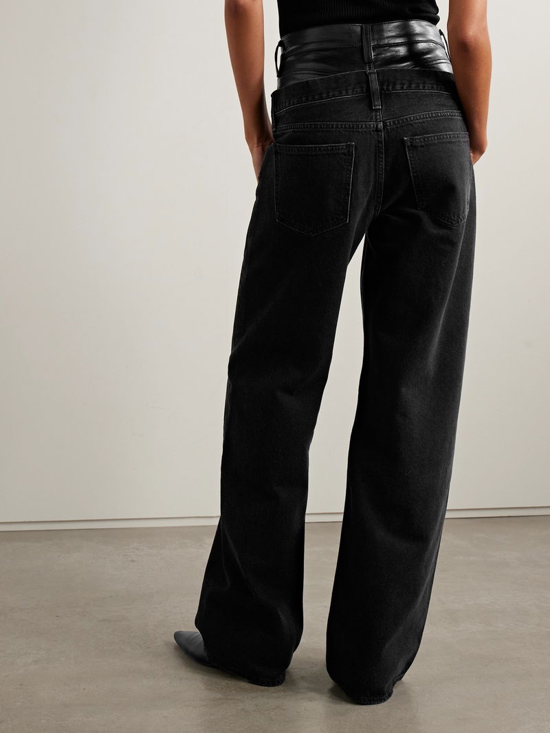 Elson Recycled Leather-blend Trimmed High-rise Wide-leg Jeans