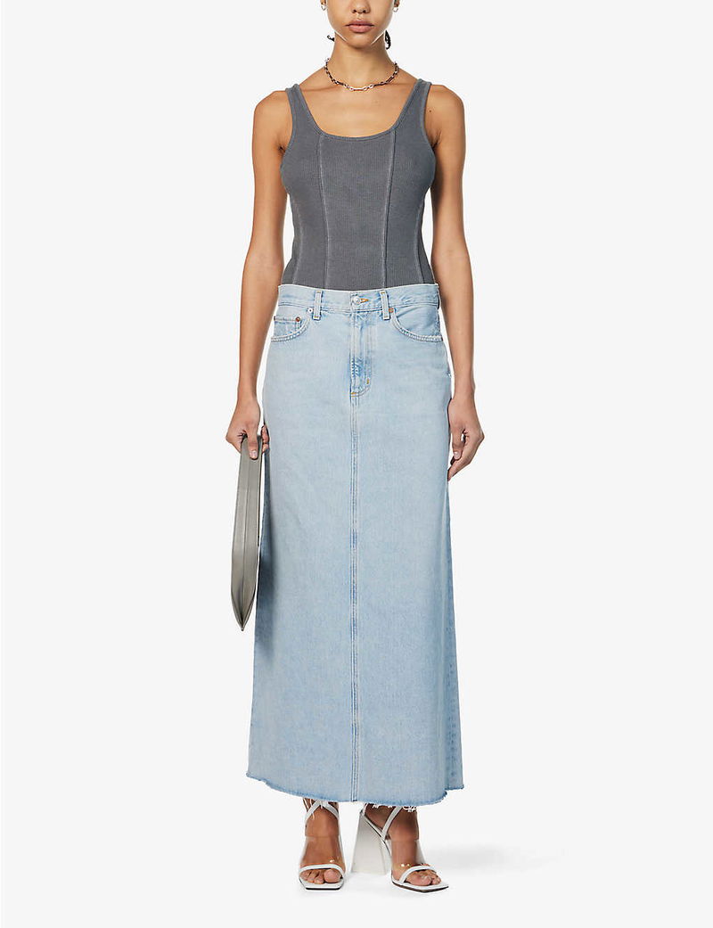 If you thought that style and sustainability were mutually exclusive, then you can think again as Agolde is proving otherwise with the introduction of its Hilla skirt. Combining eco-conscious practices with LA's laid-back aesthetic, the Cali brand whips up the midi from organic cotton to minimise the release of toxic chemicals, while its ankle-sweeping silhouette is swathed in a faded wash and left undone with raw-cut hems.