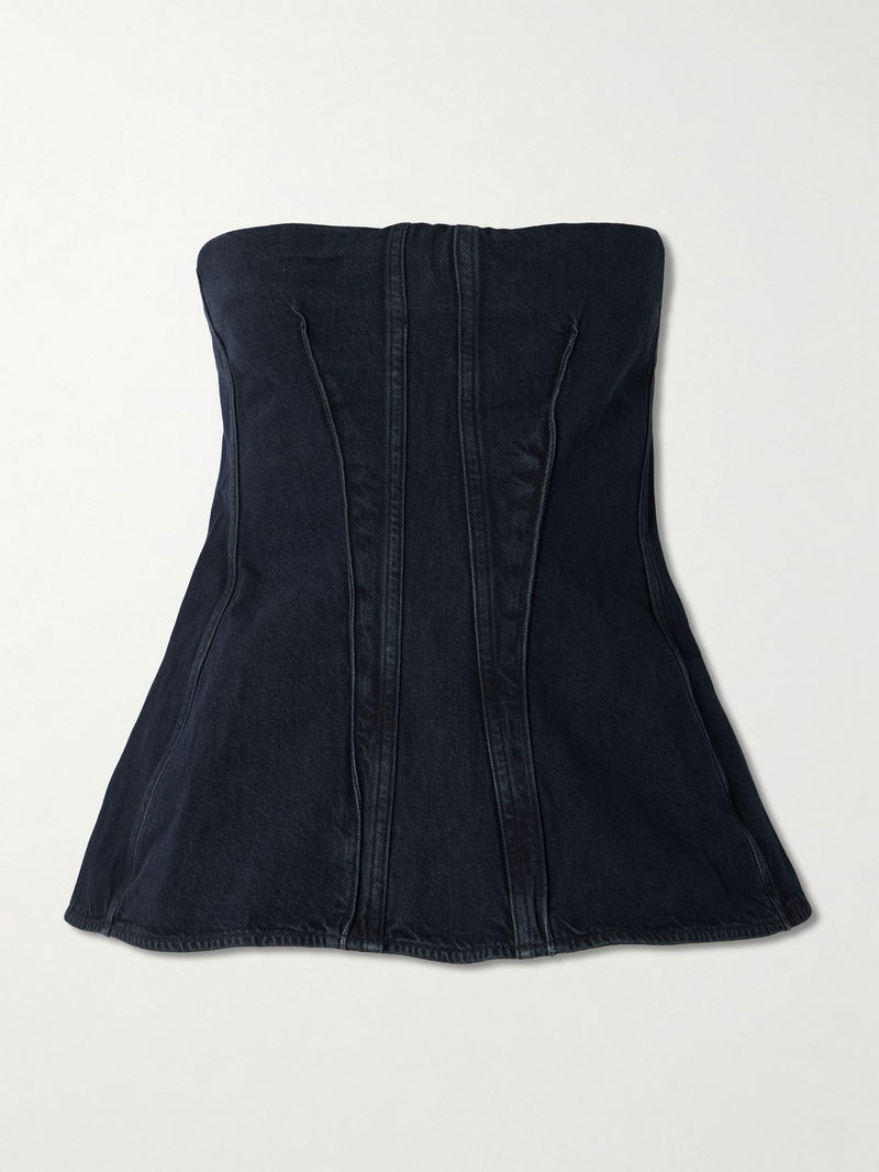 If cool glamour is what you're looking for, AGOLDE's 'Lara' bustier top is the perfect choice. Made from denim, it has a chic strapless neckline and contouring seams to accentuate the subtle peplum shape. Wear yours with the label's jeans in a matching 'Night Sky' wash.