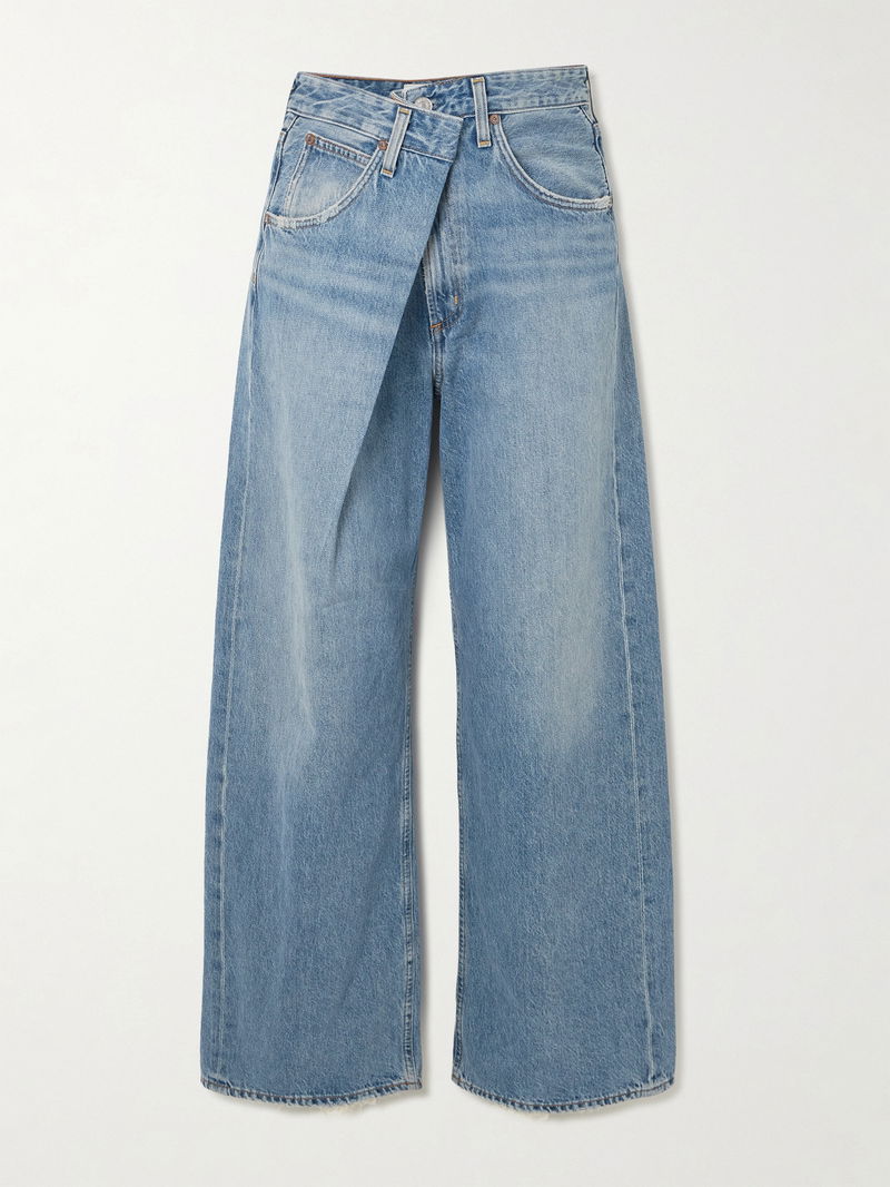 AGOLDE’s 'Vana' jeans make a bold statement with their asymmetric, wide-leg cut. Crafted from denim, the unique folded detail and loose silhouette create movement and a sculptural profile. Balance the volume with a fitted top or tucked-in blouse.
