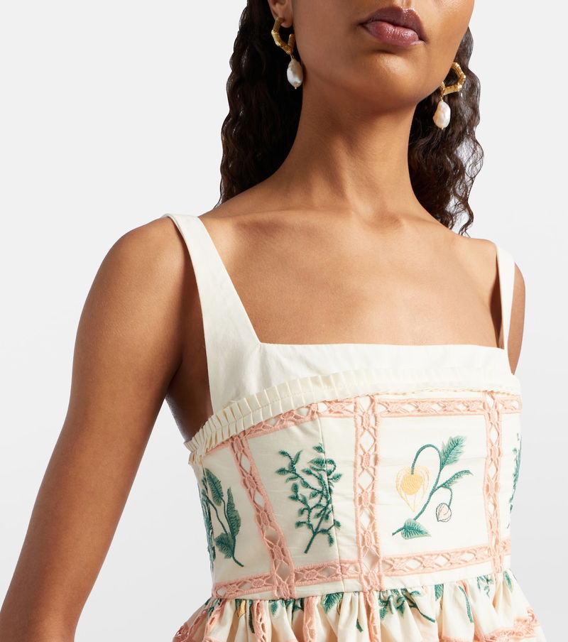 Agua by Agua Bendita’s designs are carefully handcrafted by local female artisans in and around Medellín, Colombia. Made from cotton, the Barbara minidress features an intricate embroidery and a square neckline.