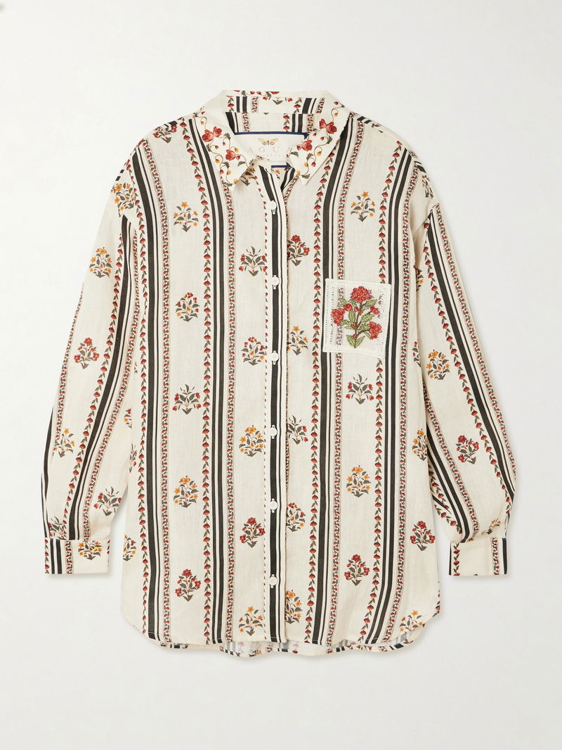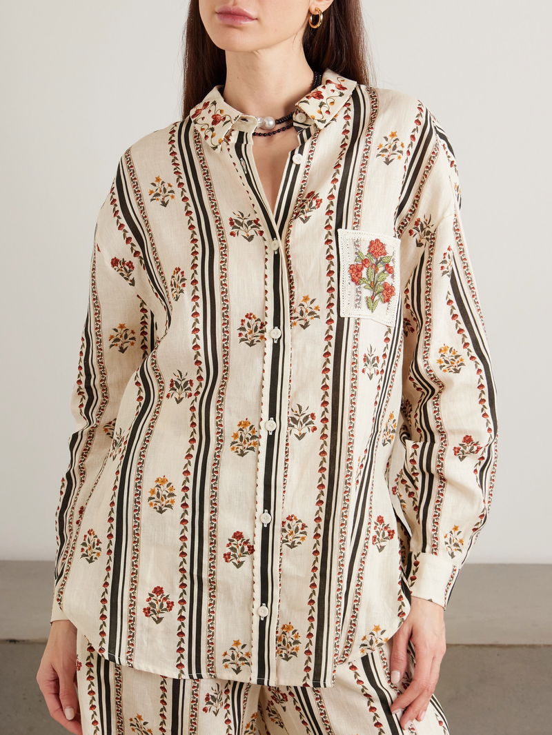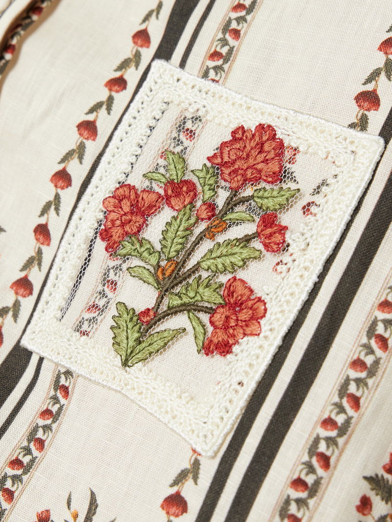 It's been locally tailored in Colombia from breathable linen, printed with floral motifs and appliquéd with an embroidered chest patch.