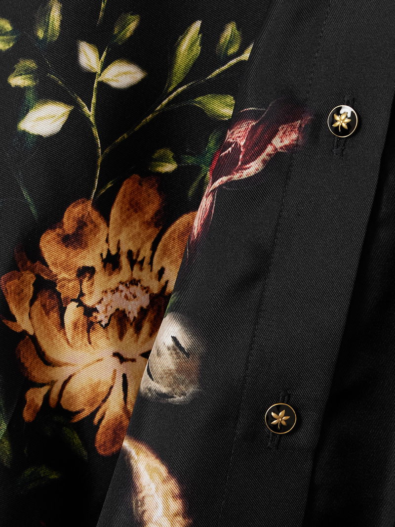 Agua by Agua Bendita's 'Cecilia Paramo' shirt is printed with delicate flowers intertwined with snakes. Made from silk-twill, it has a relaxed shape with blouson sleeves and fastens with engraved buttons. Wear yours with the matching pants in our edit.