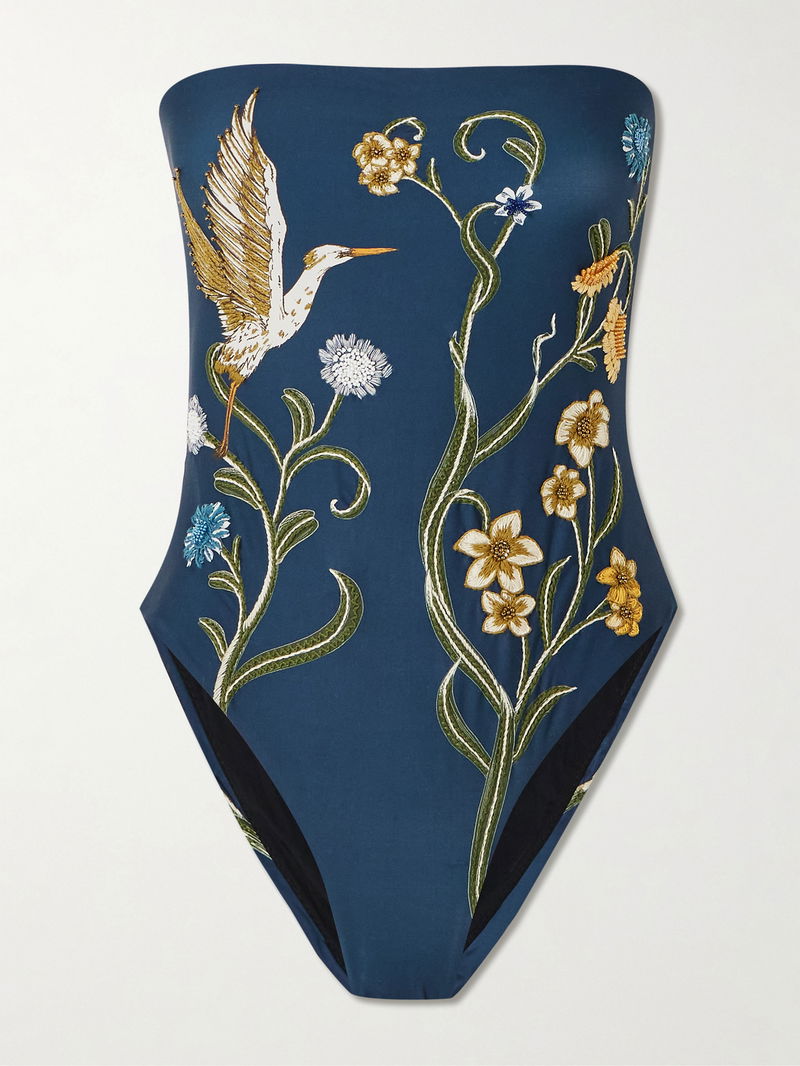 Agua by Agua Bendita's swimsuit is prettily embroidered across its surface – the brand is so often inspired by Colombian nature. It's made from stretchy recycled fabric in a clean strapless cut.