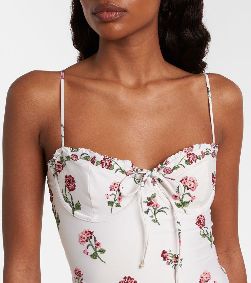 Agua by Agua Bendita’s designs are carefully handcrafted by local female artisans in and around Medellín, Colombia. The Ebano swimsuit features a heart-shaped neckline and delicate floral embroidery.