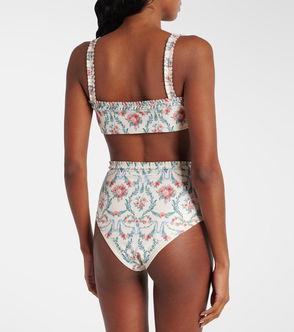 Agua by Agua Bendita’s designs are carefully handcrafted by local female artisans in and around Medellín, Colombia. The Kiwi Orquidea, floral bikini top, has a structured fit with underwiring at the cup and ruffled straps.