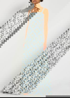 This halterneck 'Magnolia Honeysuckle' maxi dress is made from smooth linen and silk-blend printed with rows of blooming flowers. The delicate waistband embroidery is carried out by hand.
