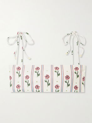Agua by Agua Bendita's 'Marimar Gardenia' bikini top is part of the Spring 'Suspiro' collection, inspired by carefree strolls through blooming landscapes. Made from recycled fabric treated for UPF 50 protection, it's printed with lush flowers and has a halter neckline. Team it with the coordinating briefs and pareo.