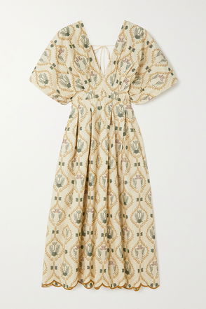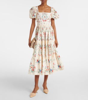 Each design from Agua by Agua Bendita is a tribute to Colombia’s natural landscapes, transformed into wearable art. Evoking the charm of vintage styles, this 'Miramar Floritura' midi dress is made from breathable linen embroidered with painterly blooms and has a fitted bodice that gives way to a softly gathered skirt.