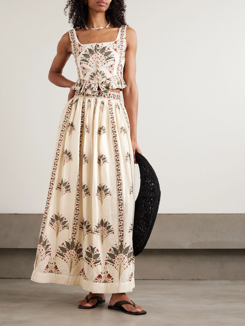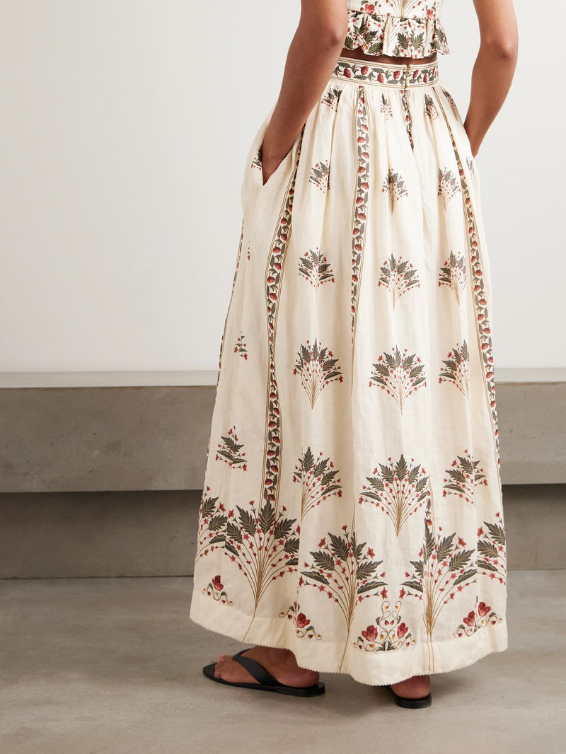 Agua by Agua Bendita's 'Ocaso Tangelo Andes' skirt brings the brand's sun-soaked spirit to life with a botanical print and effortless movement. Cut from breathable linen, it'sadorned with intricate floral motifs and scalloped trims that give texture and joyful detail. Pair yours with a simple tank and woven sandals for breezy daytime elegance.