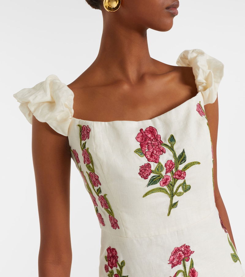 Fusing breezy ease with dainty elegance, the Siembra maxi dress from Agua by Agua Bendita is primed for sun-drenched dreamscapes. Made from breathable linen, this style features an intricate floral embroidery all over and ruffled sleeves.