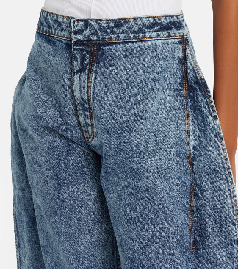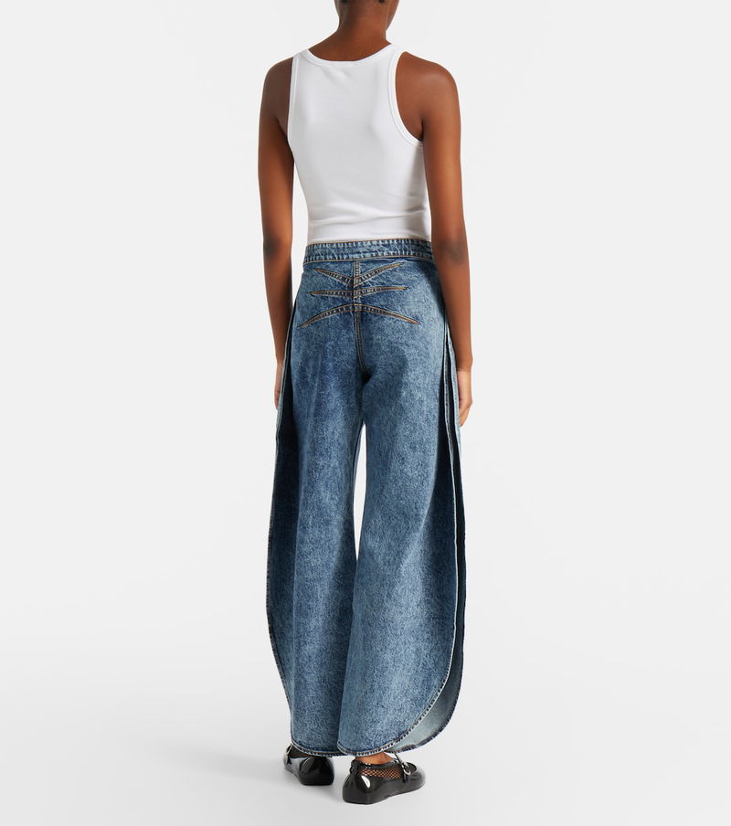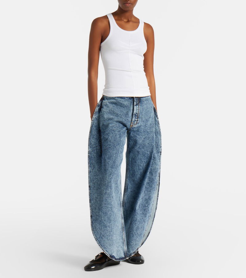 Upholding the legacy of Azzedine Alaïa, the maison’s collections achieve an artful balance between sculptural and wearable. These barrel-leg jeans are defined by rounded hems, a balloon silhouette, and sculpting darts on the back.