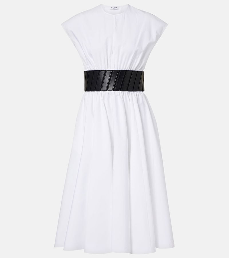 Upholding the legacy of Azzedine Alaïa, the maison’s collections achieve an artful balance between sculptural and wearable. This midi dress is crafted from cotton and boasts side slit pockets and an attached leather belt at the waist.