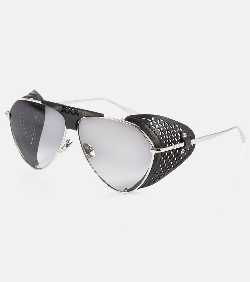 Known for flattering sculptural cuts and high-quality craftsmanship, the Parisian Maison Alaïa creates elegant styles for the modern woman. These architecturally-inspired sunglasses have a layered browline design with an extended laser-cut metal frame.