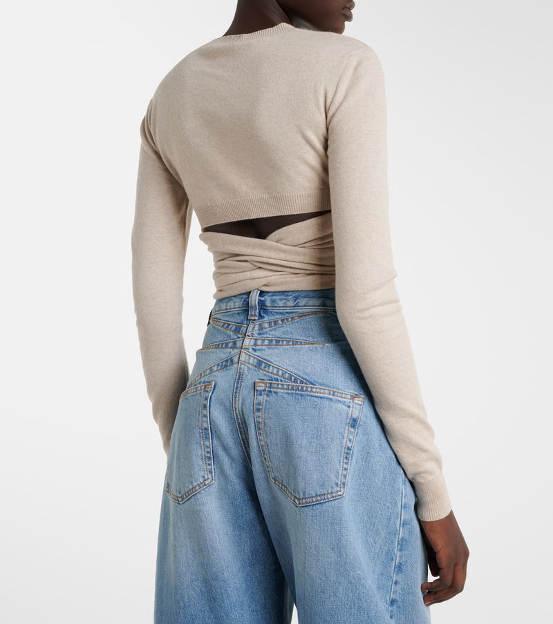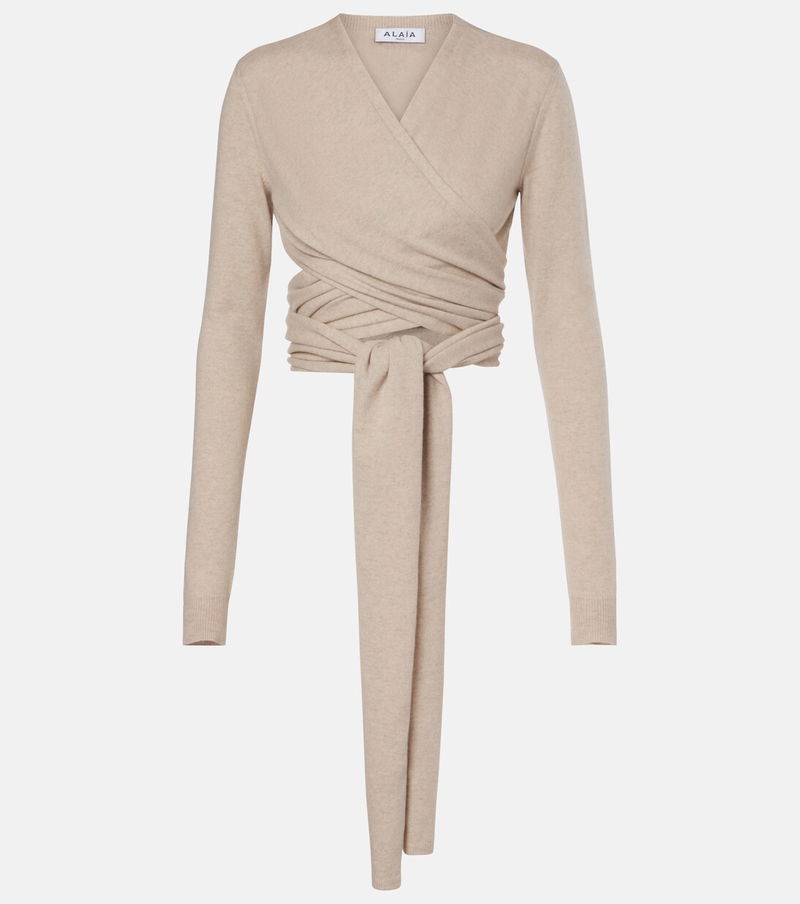 Upholding the legacy of Azzedine Alaïa, the maison’s collections achieve an artful balance between sculptural and wearable. Crafted from a soft cashmere and wool blend, this wrap top features a fitted silhouette with wrap-around ties.