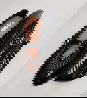 Alaïa is inspired by classic Japanese footwear, a reference that defines these ballet flats. Made from fishnet with patent leather trims, this style has buckled vamp straps and Vienne motif soles.