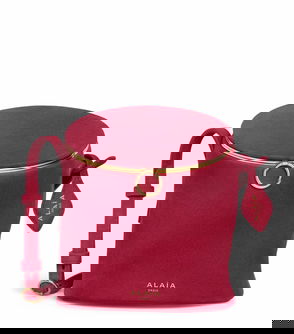 Crafted from supple suede, Alaïa’s La Canette Small bucket bag boasts a spacious silhouette perfect for storing essentials. This design features a magnetic fastening, elegant gold hardware accents, and adjustable shoulder straps for versatile styling.