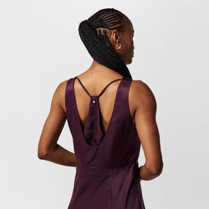 Alaïa’s gown embraces the sensuality of the night. The skirt elegantly falls to the floor while the leather bodice makes a striking statement with its deep neckline, triangular cutouts, and geometric stitching.
