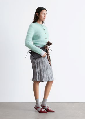 This cardigan is crafted from a soft mohair and wool blend and finished with a classic buttoned front.
