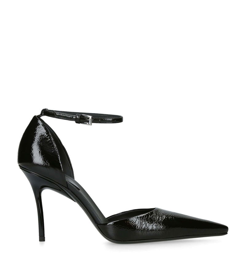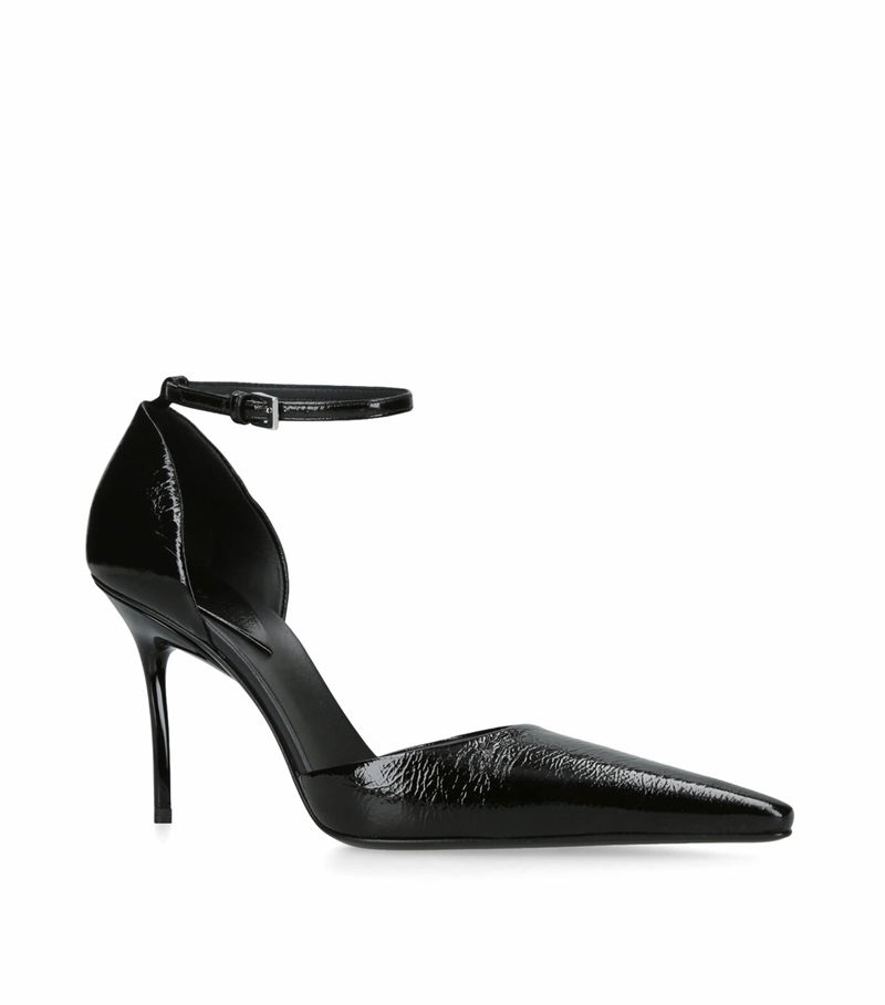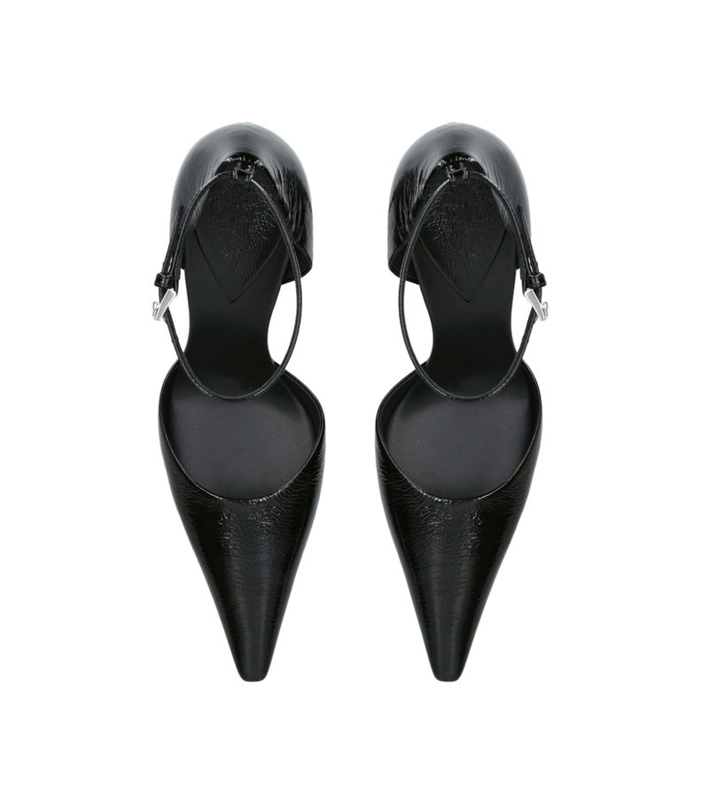 Alaïa transforms the traditional D'Orsay - a silhouette first worn in 19th-century Paris, famed for its sensuous cutaway sides - into something sculptural and striking. The bold patent leather upper and thin stiletto heel play with proportion and texture, while the open arch reveals the foot like a living artwork.