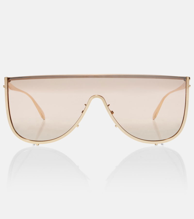 Sleek and modern, these shield sunglasses are quintessentially Alaïa. The dynamic design is crafted from metal with reflective lenses and boasts an oversized fit.