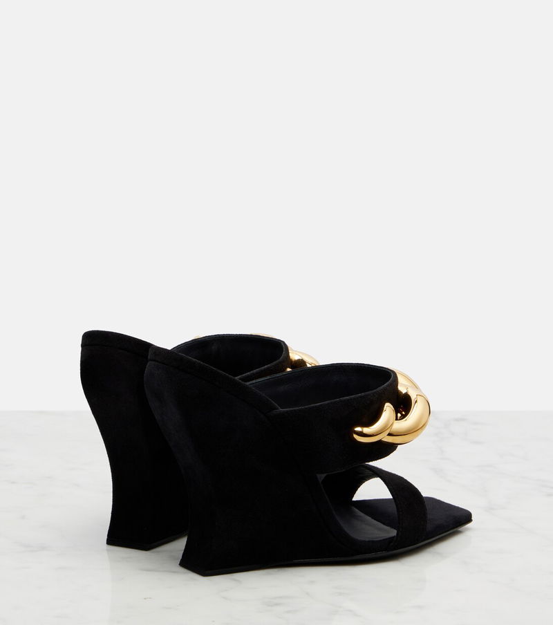 These Wave Jewel mules showcase Alaïa's signature flair for artful design. Crafted from suede, the pair stand out with a square-toe silhouette, sculptured 110mm wedges, and gold-toned embellishments on the straps.