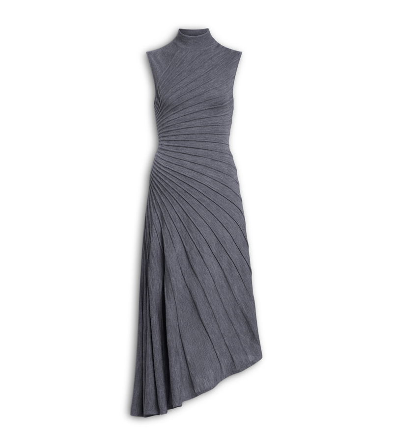 No creative stone has been left unturned at Alaïa this season, exemplified by its entire Spring/Summer 2026 collection. The Ray dress captures the core essence of the line - marked by femininity, sculpture and sinuous folds - through its pleated design. Notice how its asymmetric shape evokes the imagery of a bird's wing or individual rays of sunshine, enhancing its dynamic, graceful quality.