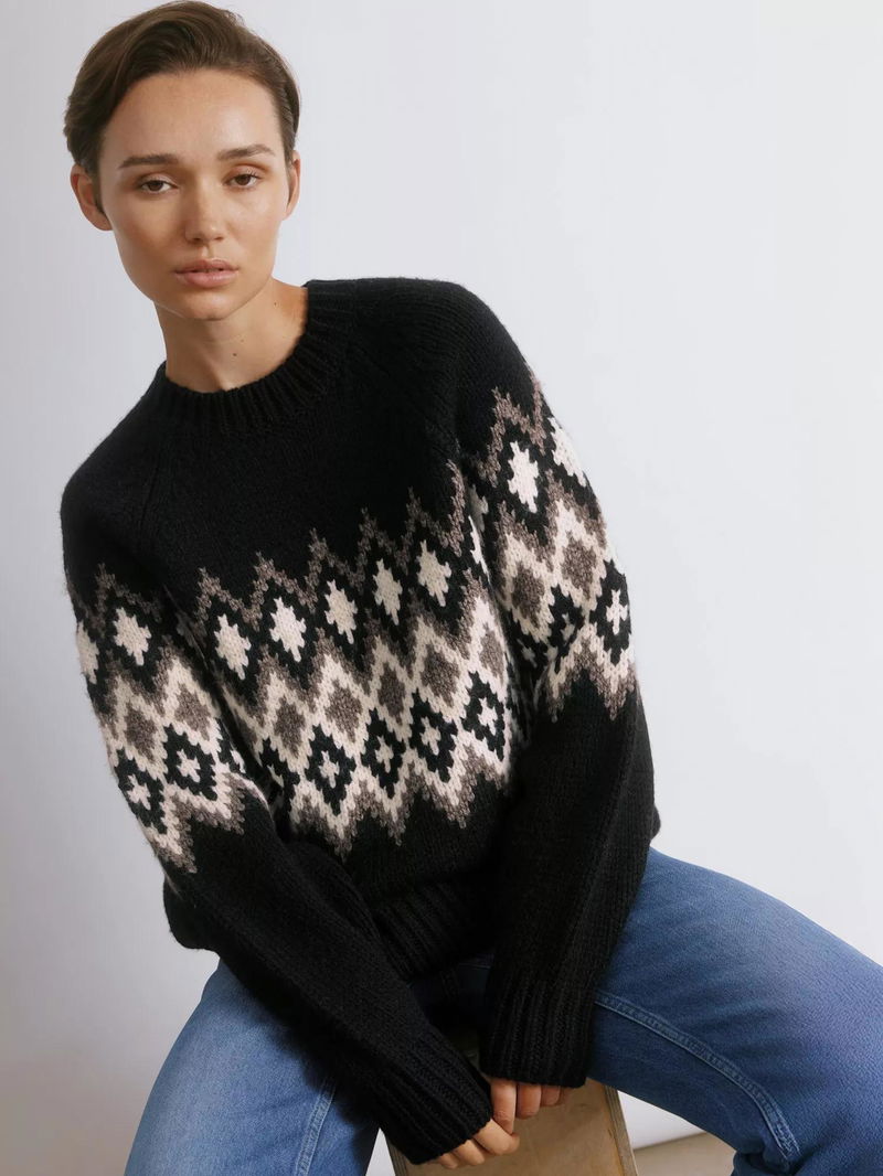 Snuggle up in warmth and style with Albaray's chunky fair isle jumper. This season's must-have, its distinctive pattern and soft wool blend make it the perfect way to stay cosy and fashionable.