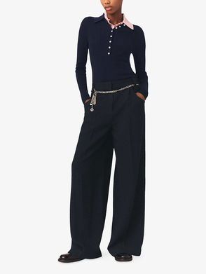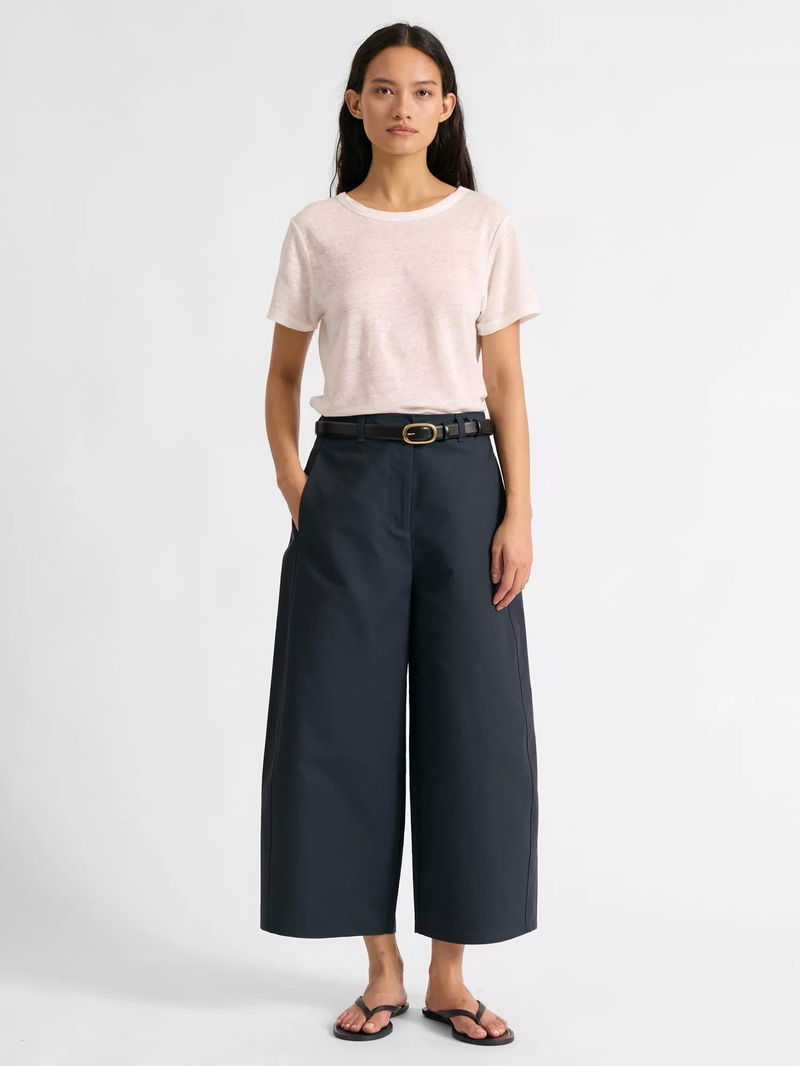Cropped Wide Leg Trousers, Navy