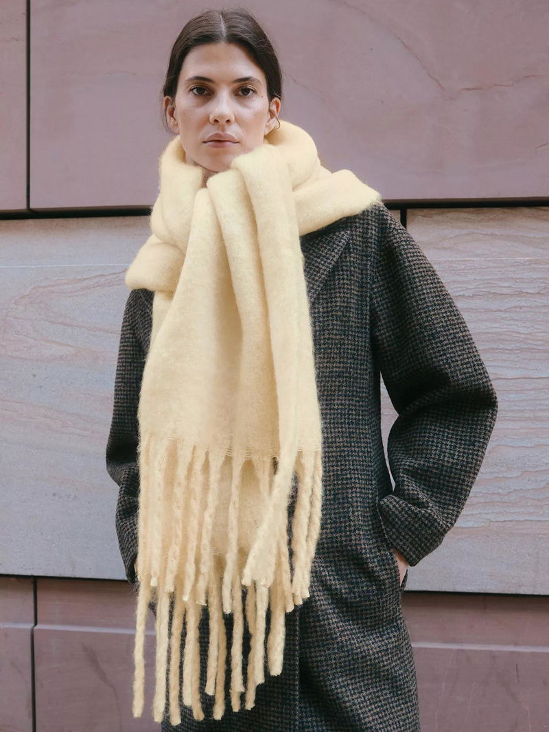 Embrace the cold with this fluffy knit scarf, a warm and cosy essential for chilly days.