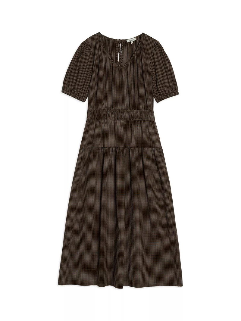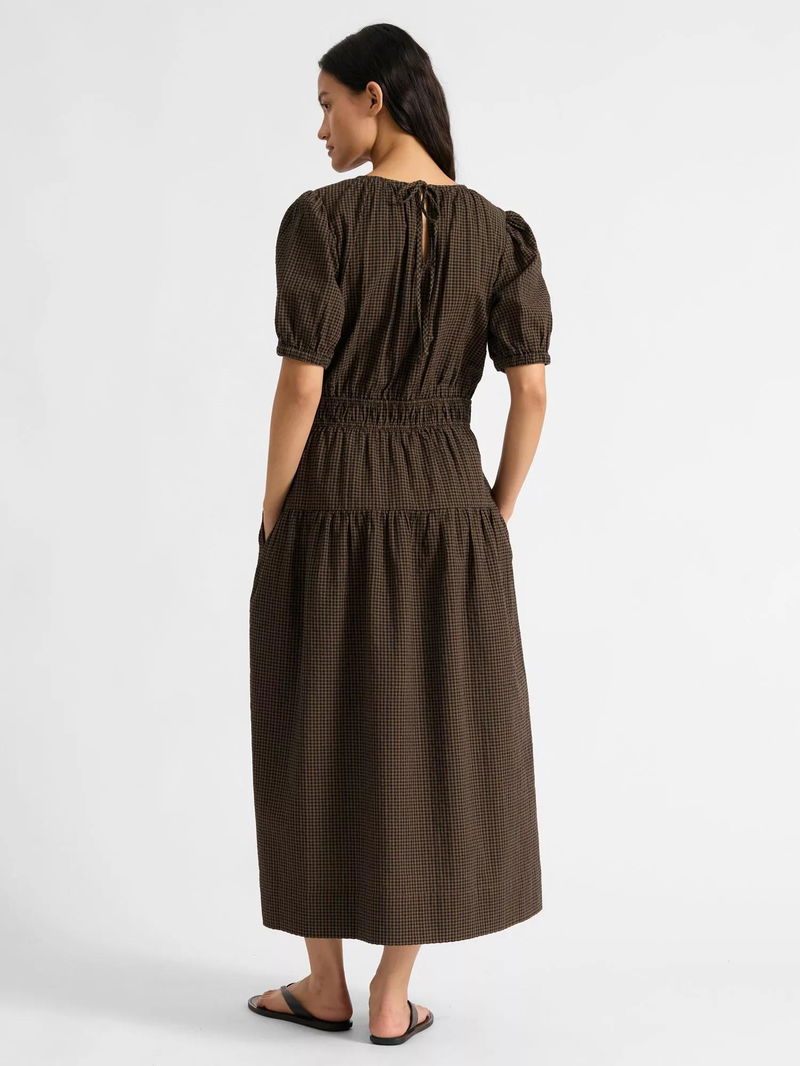 Gingham Midi Dress, Brown