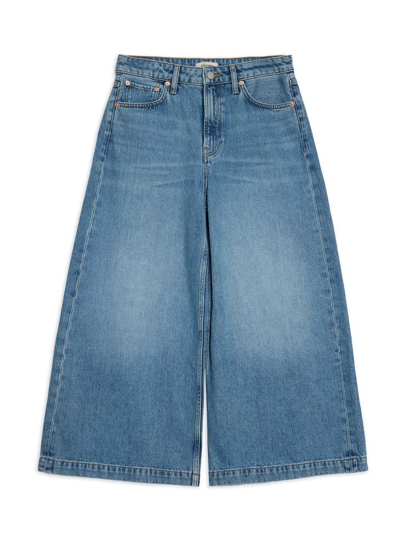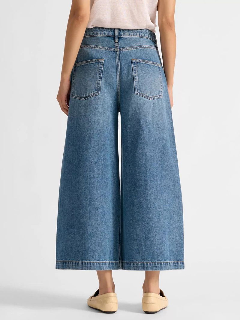 Mid Rise Denim Culottes, Mid Wash Blue