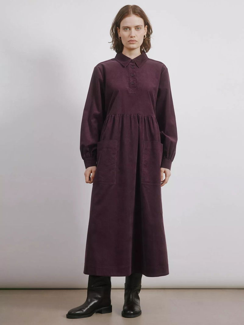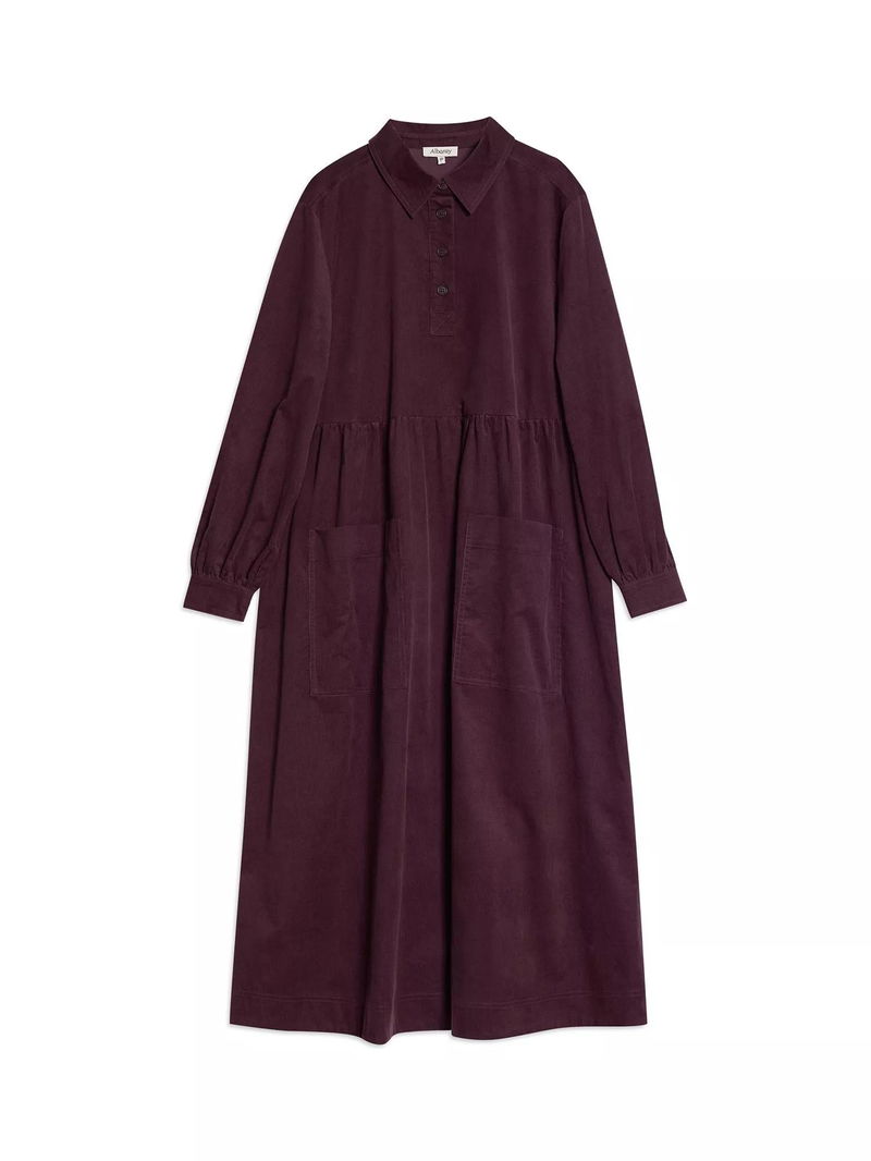 Patch Pocket Corduroy Midi Dress