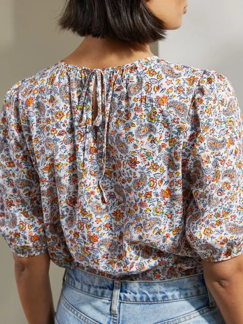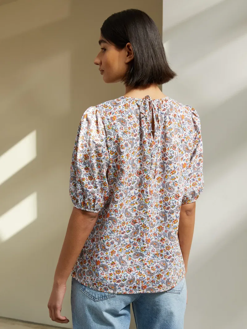 An effortless choice, this blouse from Albaray makes for an eye-catching choice thanks to its intricate paisley pattern. Cut with a softly rounded neckline and elbow length puff sleeves, it's made from organic cotton making it naturally soft and breathable and pairs effortlessly with floaty summery skirts for warm days spent with good friends.