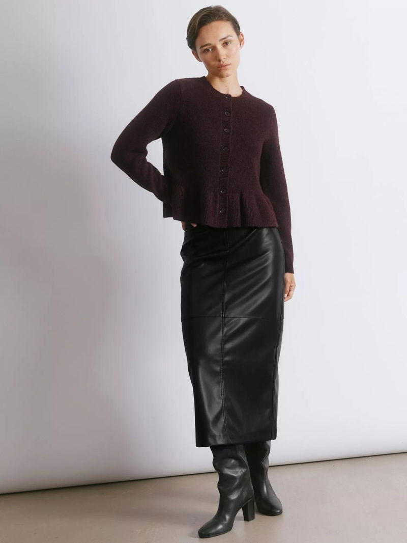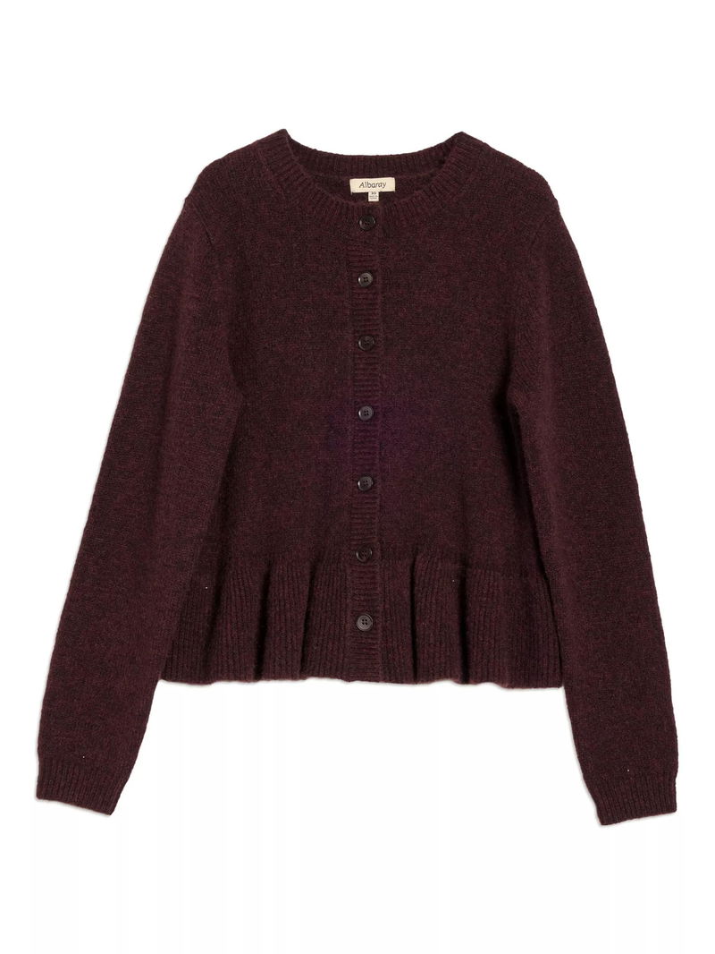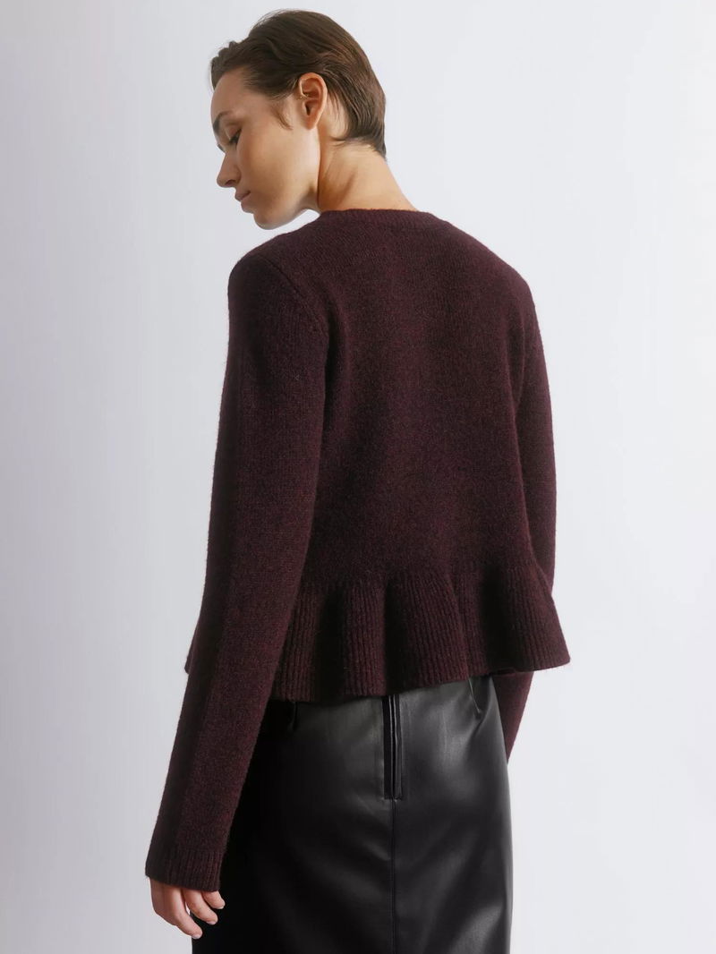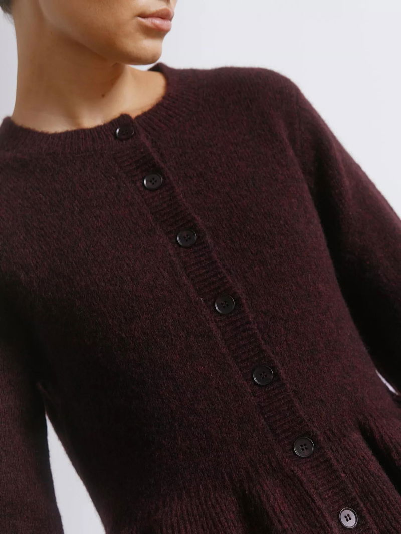 Ribbed Mohair Knit Peplum Hem Buttoned Cardigan, Burgundy