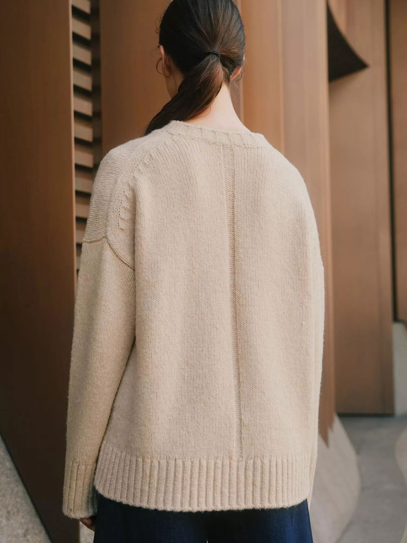 Indulge in ultimate comfort with a Wool Blend Jumper in Oatmeal. The rich, ribbed design at the neck, hem, and cuffs exudes luxury while keeping you warm. Embrace sophistication with this premium addition to your wardrobe.