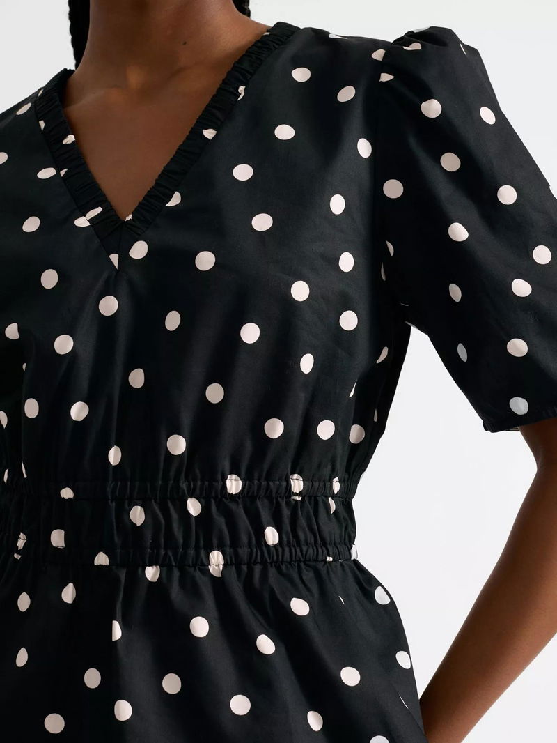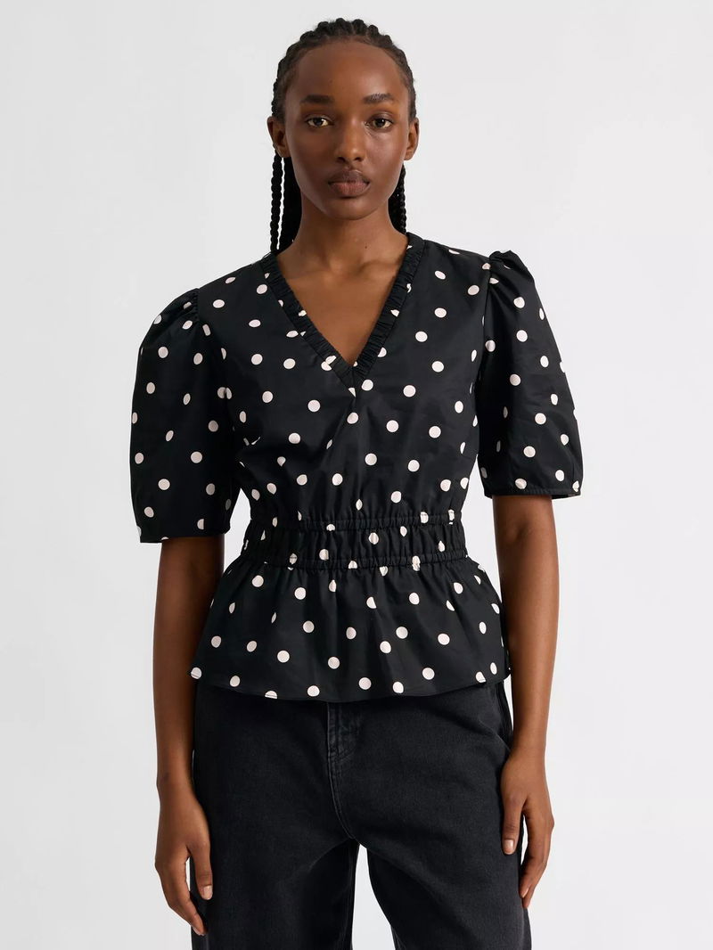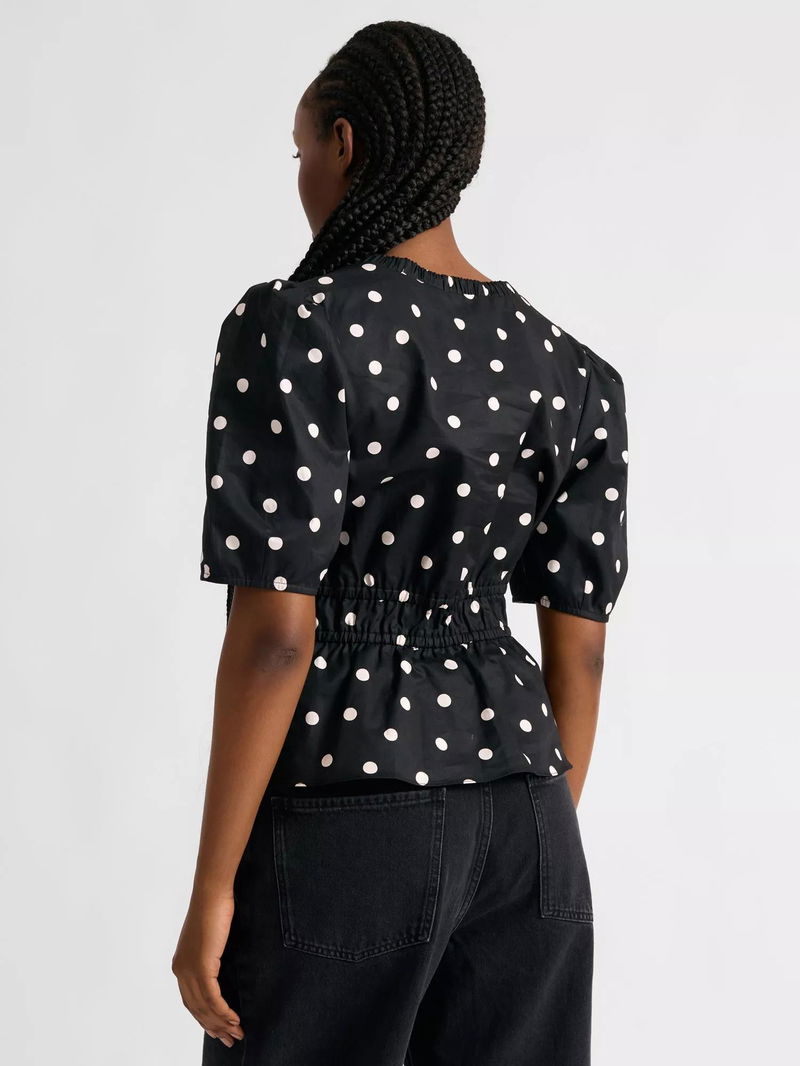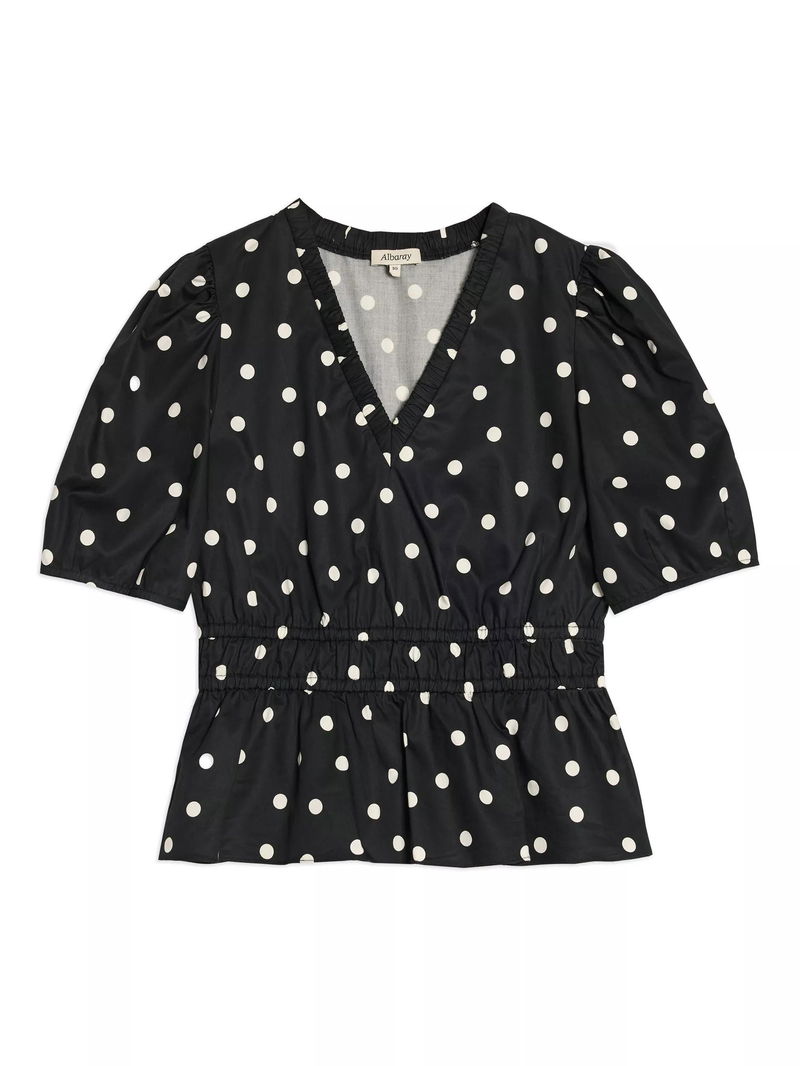 This top is made from cotton. With a fitted silhouette, this stunning top is perfect for making you feel both elegant and stylish. Designed with a gathered V-neck, short blouson puff sleeves and an elastic detail at the waist.